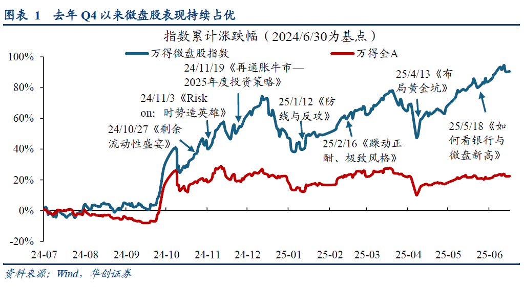 报告要点 ]article_adlist-->1、24/10以来华创策略持续看好小微盘风格,今年微盘股指数持续创下新高,当前重申年度策略观点,再通胀牛市上半场是金融再通胀,小微盘有望继续占优。